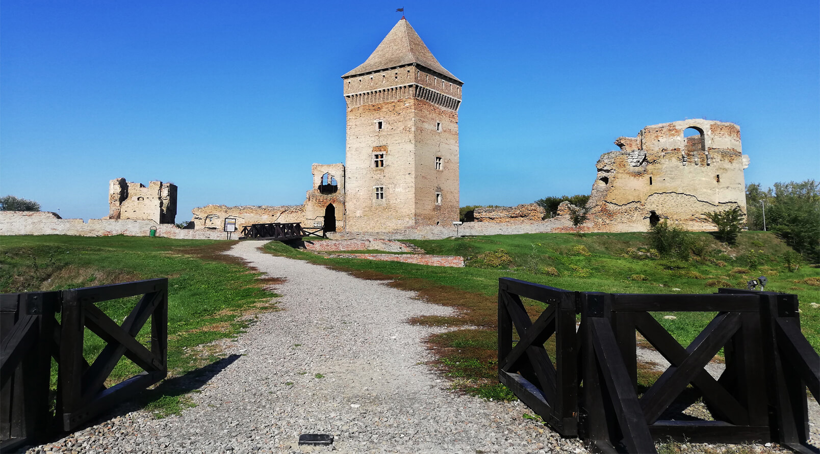 Tvrđava u Baču predstavlja najznačajnije i najbolje očuvano srednjevekovno utvrđenje na području Vojvodine. Lokalitet, na kome je tvrđava izgrađena, svedoči o dugom nizu vekova korišćenja ovog prirodno odbranjivog terena, koji je svoju sudbinu vezao za reku Dunav, prirodnu granicu među narodima i civilizacijama. Na prirodno uzdignutom terenu, nastalom meandriranjem reke Mostonge, nalazilo se palisadama ograđeno podgrađe sa pravcem pružanja istok-zapad, u koje se ulazilo preko mosta i kroz ulaznu kulu sa kapijom. U severozapadnom delu meandra, na ostrvu, bio je smešten utvrđeni zamak do koga se stizalo prolaskom kroz izdvojeni barbakan, sa svih strana okružen vodom. Plato na kome je podignuto utvrđenje relativno je malih dimenzija i zahvata površinu od 8.700 m2. Osnova tvrđave, površine 5.600 m2, u obliku je trapezoida, prilagođenog obliku terena. Na uglovima se nalazilo pet isturenih odbrambenih kula, međusobno povezanih bedemom širine 2 m i visine 12 m, sa streljačkim stazama. Kule su različitih oblika i dimenzija. Istočni deo tvrđave bio je najbolje branjen, pošto se tu nalazi branič-donžon kula i rezidencijalna palata, ekonomski objekti uz zapadni bedem i niz žitnih jama. Svi objekti bili su izgrađeni od opeke uz primenu kamena za dekorativne elemente.
