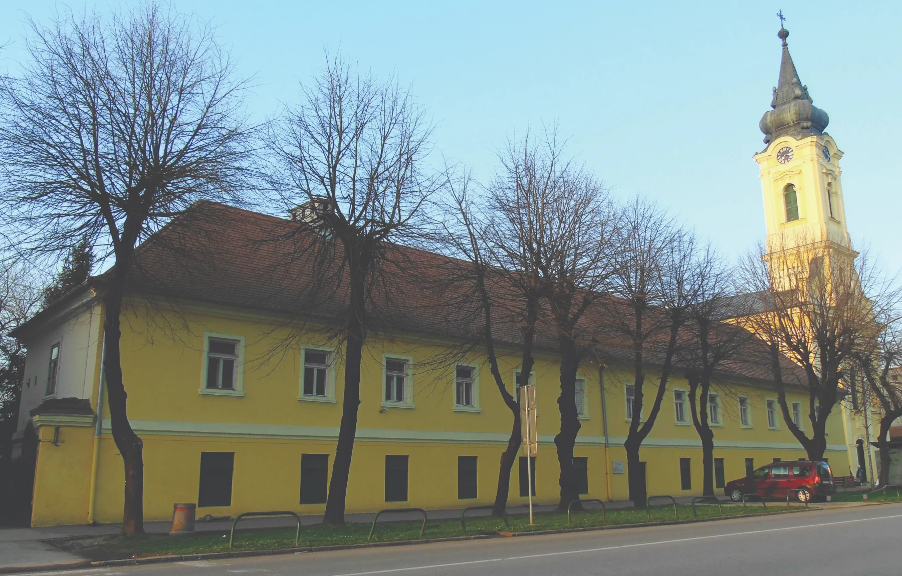 Objekat Zavičajnog muzeja Ruma, pod zaštitom je države, kao nepokretno kulturno dobro od velikog značaja, najstariji je i istovremeno prvi spratni objekat u Rumi. Potiče iz 1772. godine, a sa rimokatoličkom crkvom izgrađenom 1813. i župnim dvorom iz 1815. godine čini jedininstven autentičan urbanističko arhitektonski ansambl gradskog tipa. Sva tri objekta zadužbine su porodice Pejačević.